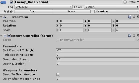 1) 이제 기존의 "Enemy_Boss_Variants" 중 하나에 있는 Weapon Controller를 살펴보겠습니다.