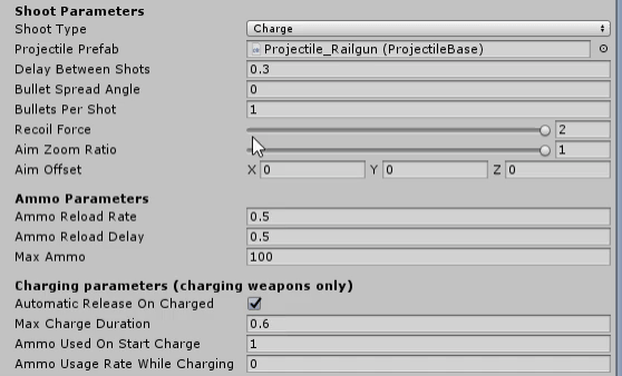 - Charge 타입 무기의 경우, Automatic Release On Charged 토글을 활성화시키면, 무기를 충전된 즉시 발사됩니다.